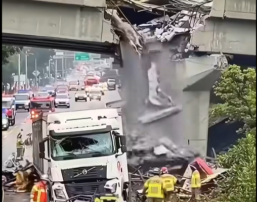 Sh0cking collision unfolded as a semi-truck slammed into a city overpass pillar. Knight Street closed southbound after truck hits overpass in Richmond, B.C.